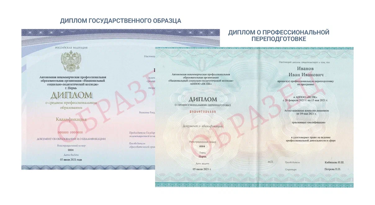 Первый — государственного образца о среднем профессиональном образовании и второй — установленного образца о профпереподготовке.